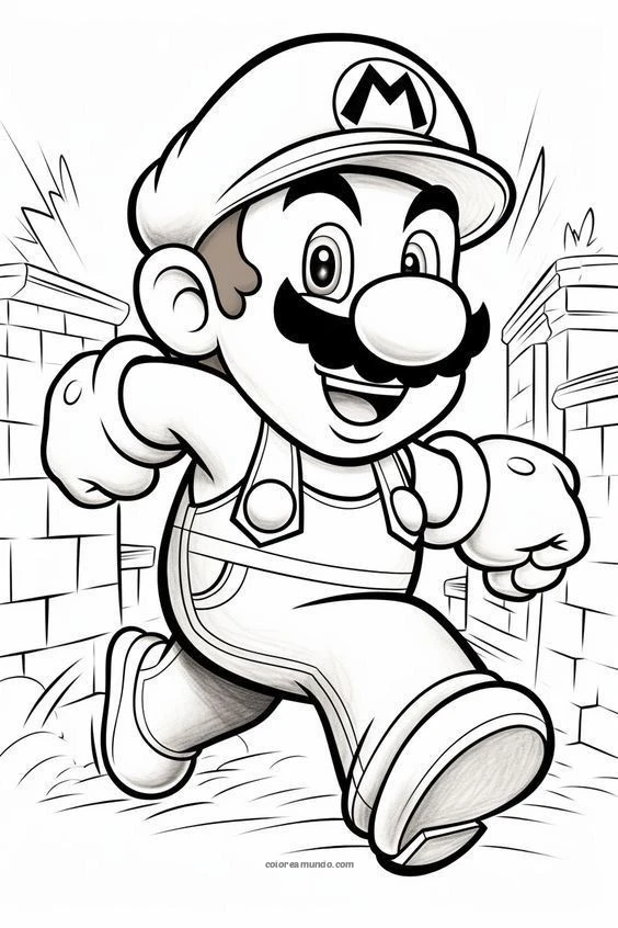 martio bros version tierna corriendo felizmente dibujo para imprimir