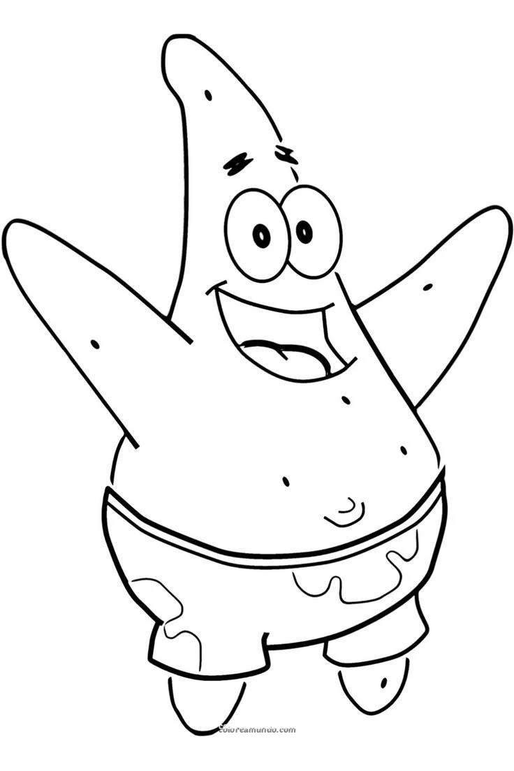 patricio estrella feliz con los brazos abiertos, dibujo para ser impreso y colorear