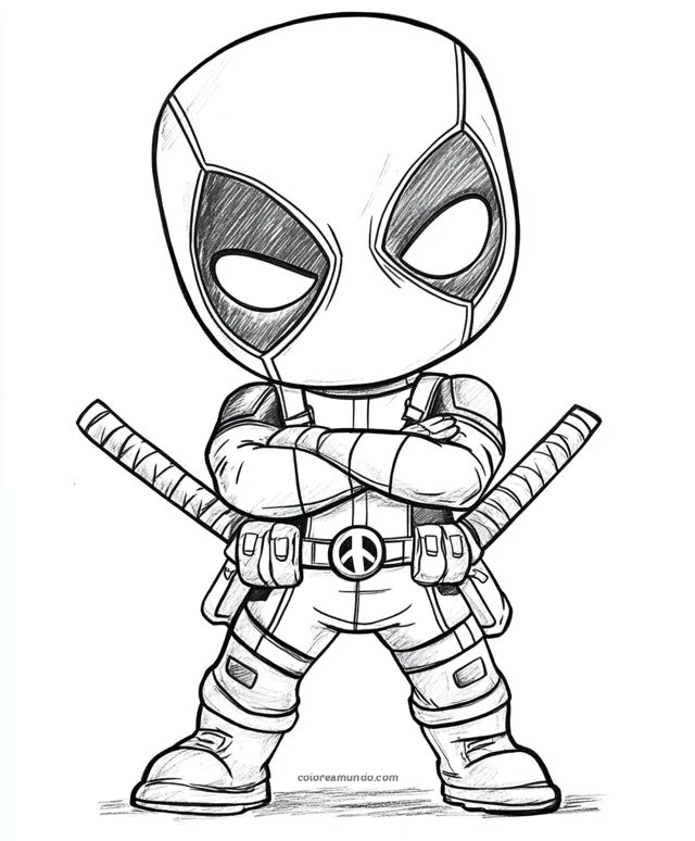 DeadPool version tierna chibi con los brazos cruzados de enfrente