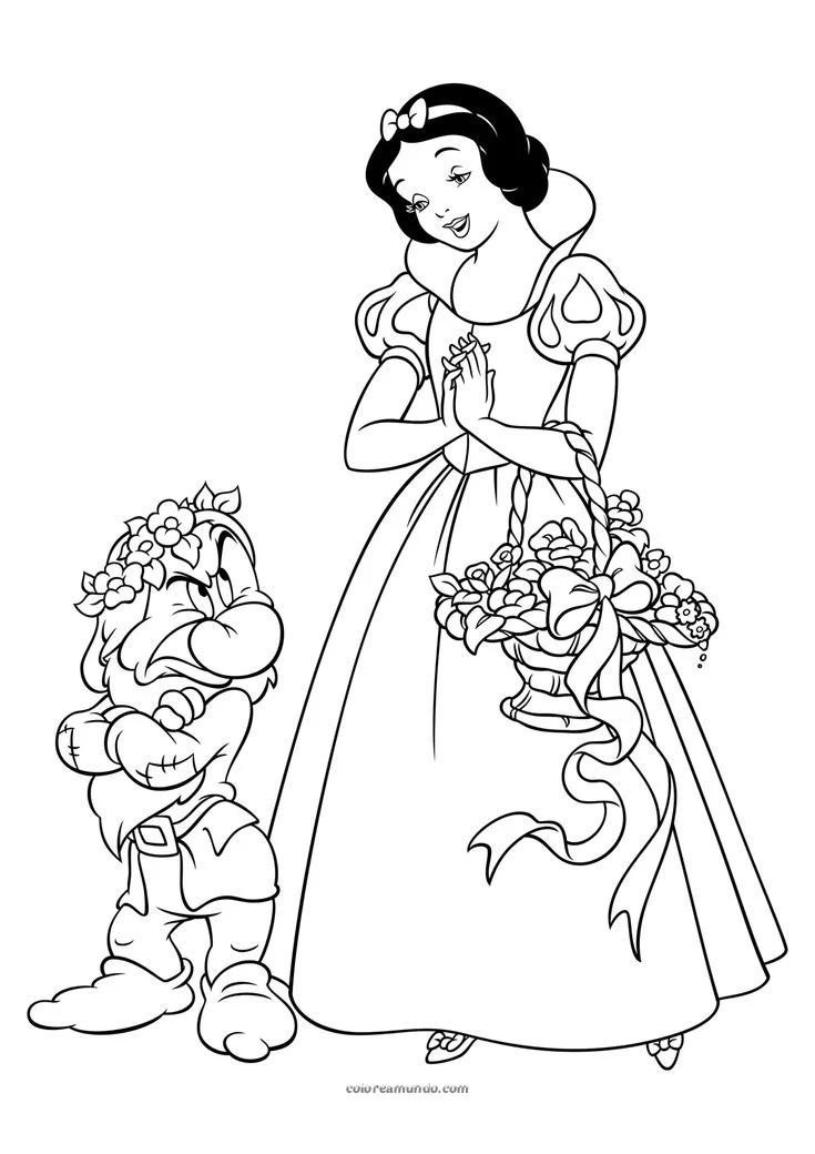 blanca nieves con los enanitos dibujo para colorear