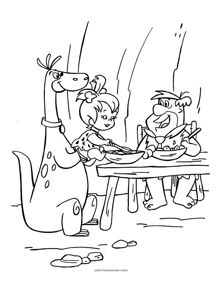 Pedro picapiedras comiendo con dino y pebbels
