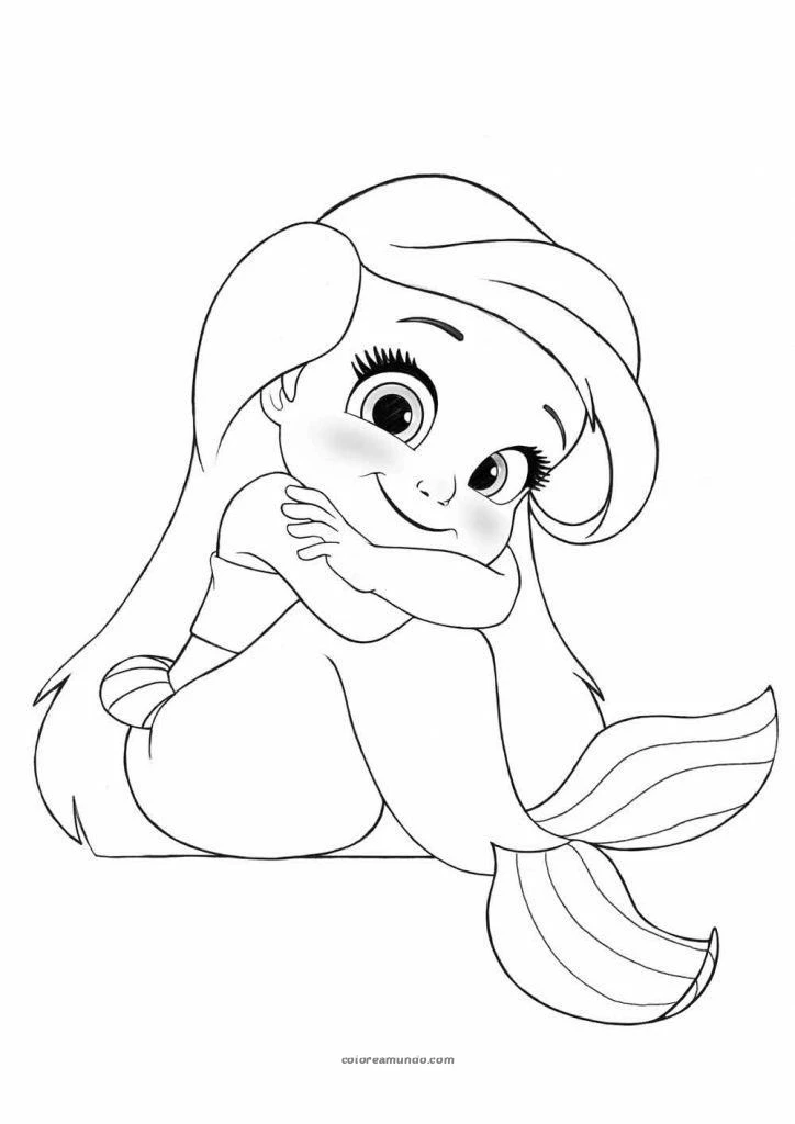 sirenita version chibi dibujo para colorear