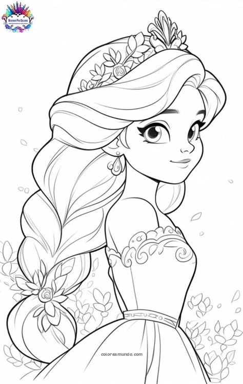 dibujo para colorear ded princesa de lado