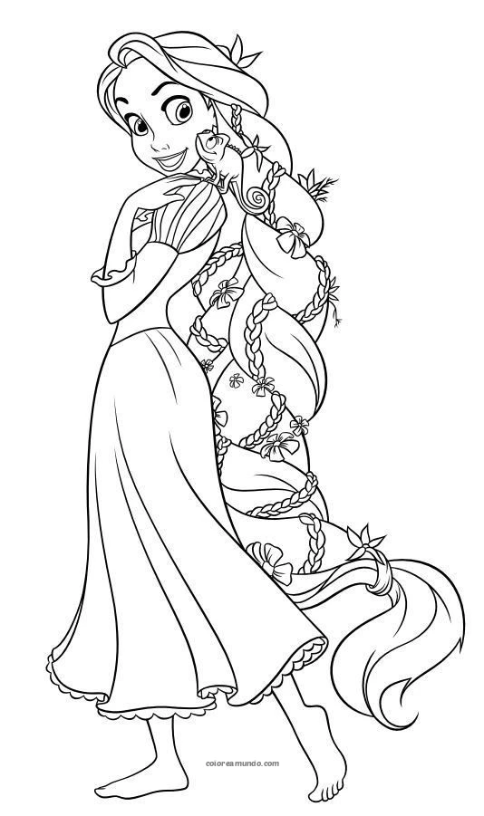 princesa de cabello largo para colorear