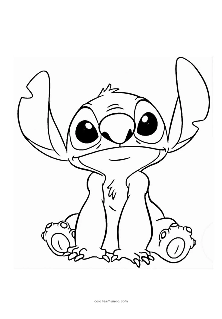 stich sentado posando con sus manos en el suelo