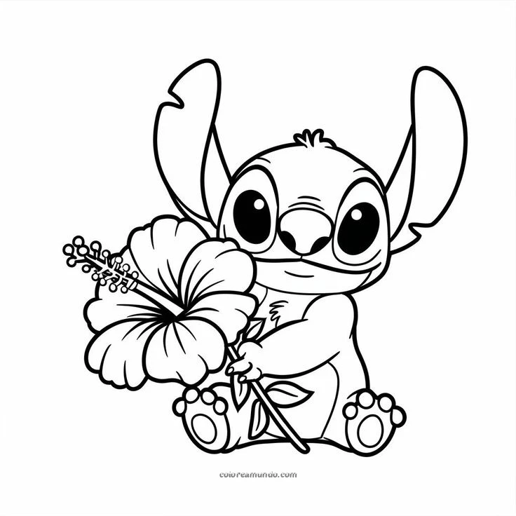 stich con una flor en la mano, dibujo para colorear