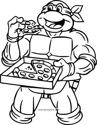 tortuga ninja comiendo una rebana de pizza dibujo para colorear