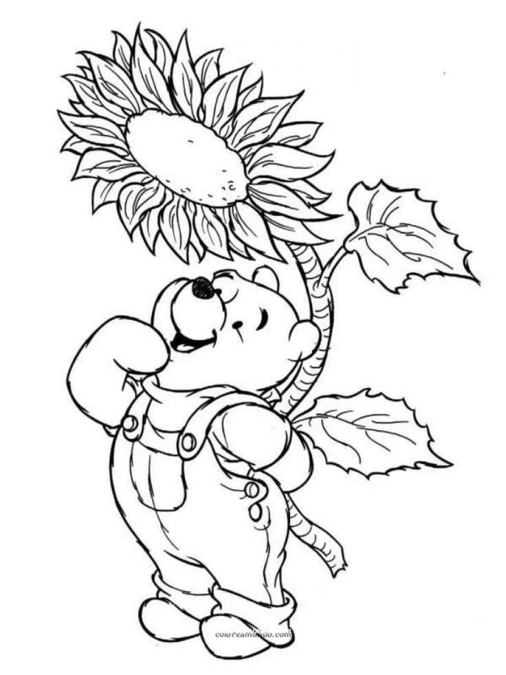 winnie the pooh con un girasol gigante en la espalda