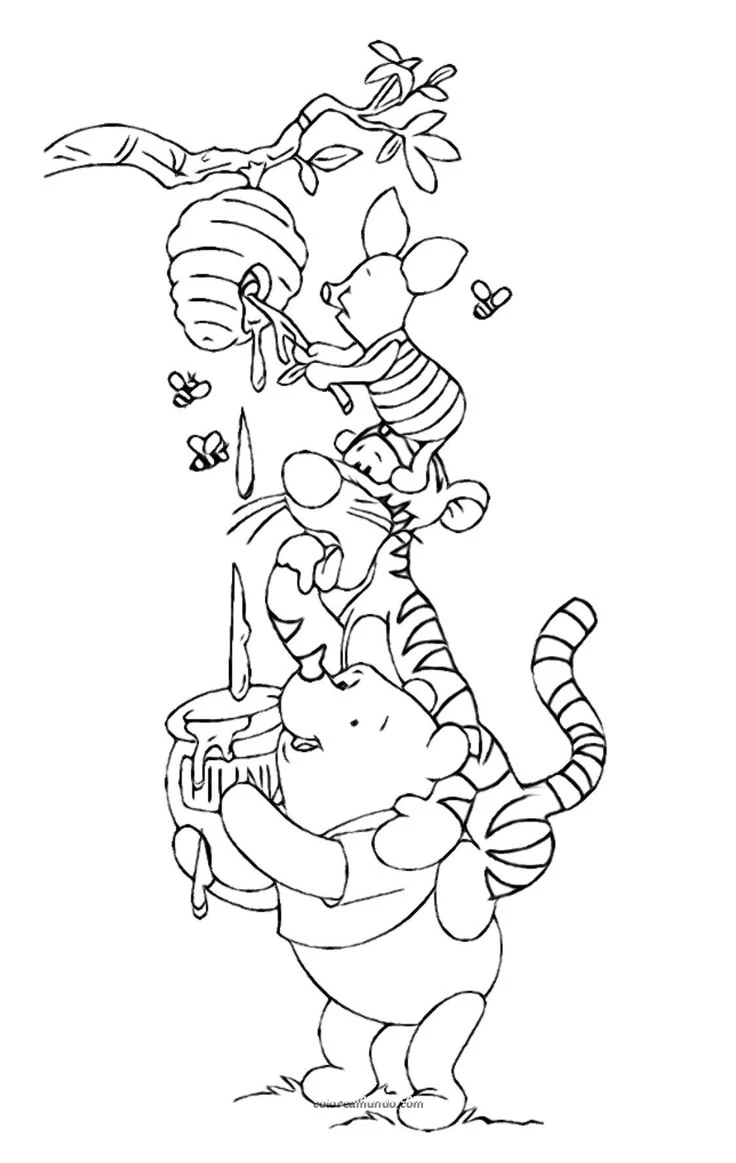 pigglet tiger y winnie the pook tratando de obtener miel de un panal