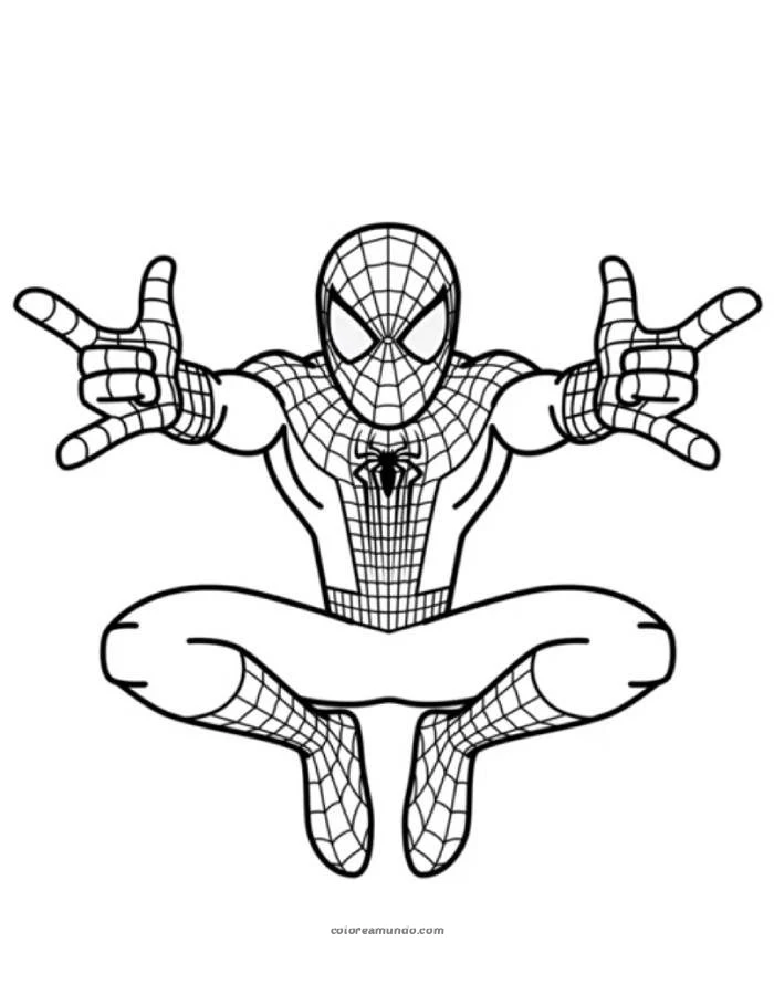spiderman saltando en el aire apunando con sus manos