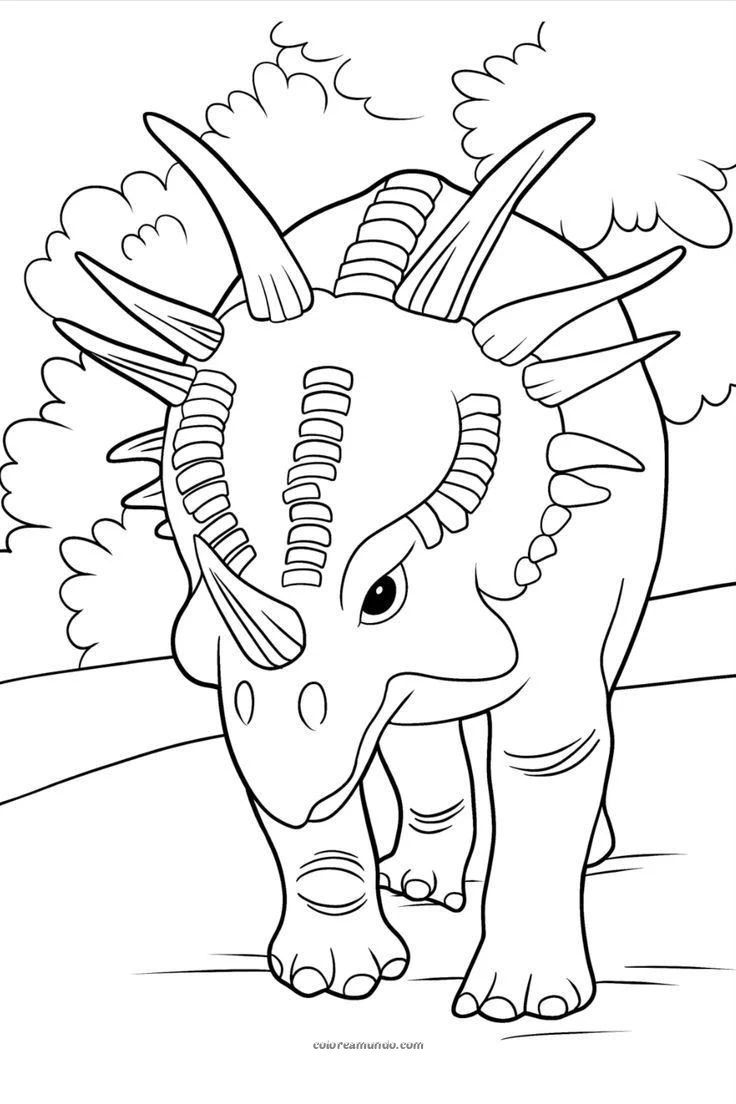 dinosaruio con cuernos dibujo sencillo para imprimir
